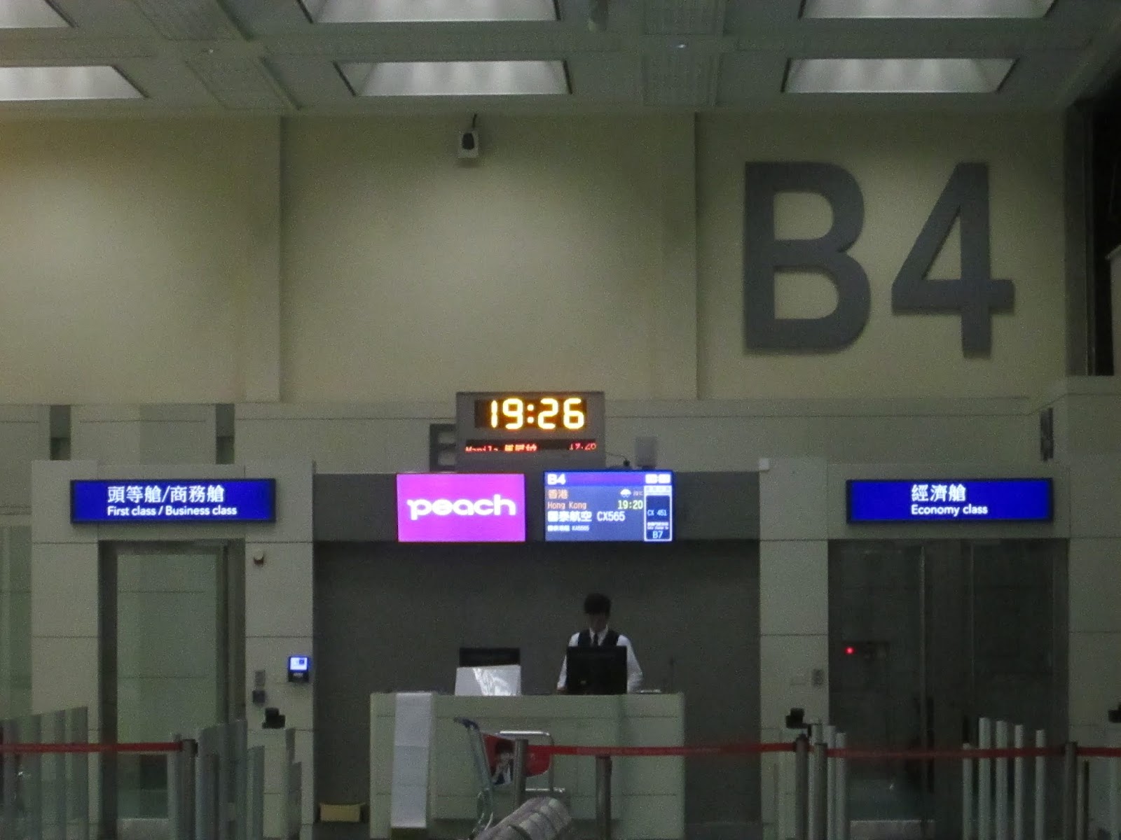 換好之後就回到報到櫃台等待開櫃,此時離開櫃時間還有1小時 (就定位之後後面就有日本人排在後面w)